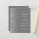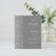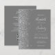 The left-hand edge of this elegant modern wedding invitation features a silver faux glitter border. The customisable text combines pale silver grey handwriting, copperplate and italic fonts on a grey background. The reverse side provides space for wedding details on a solid grey background, along with a QR code guests can scan to visit your website and RSVP.