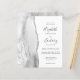The left-hand edge of this elegant modern wedding invitation features a grey and white watercolor agate border trimmed with faux silver glitter. The customisable text combines handwriting, copperplate and italic fonts in charcoal grey on a white background. The reverse side features a matching grey, white and silver agate design. NOTE: Envelopes are not automatically included with these budget invitations, so please remember to choose the "white envelopes" option!