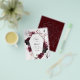 Budget Halloween October 31st Autumn Fall Dark Watercolor Burgundy Wedding Invitations on Black background - includes haunting and scary elegant script typography with modern Flowers and Bat Wings for the special Creepy Wedding day celebration.