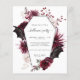 A unique floral water colour coffin cutout and bat wings are the centre piece of this design. This design mixes elegance and goth.