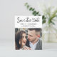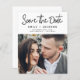 Budget Modern and Elegant Handwritten Script Photo Save the Date Wedding Card. The save the date invitation card includes a chic and stylish typography with a simple and minimalist design on a white background that you can add your customised engagement photograph picture to.