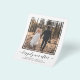 NOTE: Envelopes are not included and this budget-friendly invitation prints on thin paper, not thick card stock. Simple and chic elopement or small wedding announcement and wedding reception or celebration party invitation. The front features your photograph in a cut out square frame, "happily ever after" in a trendy script with swashes and your first names and wedding date and location in modern typography. On the reverse side, you can personalise your wedding announcement in more detail, add a reception or party invitation and sign your married names in a signature-like script.