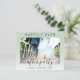 Budget-friendly elopement or smaller wedding announcement to inform family and friends that eloped or reduced the number of guests at your wedding, and to invite them to a post-wedding reception or celebration party. The sage green ombre front features your photo and "Happily Ever After Party" in a mix of simple typography and trendy script, and your first names and wedding date. On the reverse you can personalise your message and invitation in more detail and your names in a signature-like script.