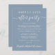 Budget-friendly dusty blue elopement or private wedding announcement and wedding reception invitation. The front features "Happily Ever After Party" in a mix of simple white typography and a contemporary white script with swashes, and you can personalise your message and invitation and add your names in a signature-like script. The reverse side features your first names and wedding date.
