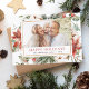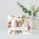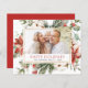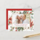 Budget Rustic Winter Merry Christmas Family or Business Photo Card with Holiday Floral White Flowers, Greenery and Red Poinsettia Flowers with a simple Background.