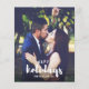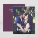 Share holiday greetings with these Christmas photo cards featuring your favourite vertical or portrait orientated photo. "Happy Holidays" appears at the bottom as a text overlay in white brush modern lettered typography. Personalise with your family name or names beneath. Cards reverse colour purple ( can be changed to fit you photo colour scheme) and a space for a message.