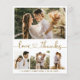Budget, Elegant, Modern, Elegant Heart Font Script Wedding 4 Photo Collage Affordable Thank You Card in Gold and White. Stylish, minimalist wedding card template featuring four (4) grid photo collage on the front and one (1) photo on the reverse side. "Love and thanks" text in a hand lettered calligraphy cute heart font script with swash tail. Personalise with your name and thank you message. If You need help or matching item, please contact to designer!