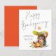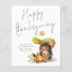 Cute Hedgehog Script Happy Thanksgiving. A budget price SMALLER 4.5” x 5.6” flat card for your thanksgiving greetings on a shiny SEMI GLOSS 110 lb card stock (similar to the thickness of a postcard) PLEASE NOTE: The envelope supplied with this card is slightly larger than the card itself. A sweet hedgehog with a leaf umbrella and trendy set typography for Happy Thanksgiving. Easily personalise your names at the bottom and add an optional message on the back if you wish.