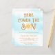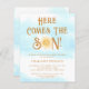 Invite family and friends to your sun-themed baby shower with this cute budget boys' baby shower invitation.