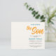 Invite family and friends to your sun-themed baby shower with this cute sunshine boys' baby shower budget invitation. It features the text "Here Comes The Son" in stylish typography with a colourful watercolor sun on a soft cream background. Easily customisable. Original Watercolor © Michele Davies.