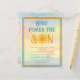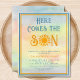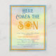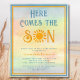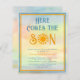 Invite family and friends to your sun-themed baby shower with this budget boys' baby shower invitation. It features the text "Here Comes The Son" in stylish retro typography with a yellow watercolor sun on a colourful background. Easily customisable. Because we create our artwork you won't find this exact image from other designers. Original Watercolor © Michele Davies.