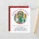 Holiday Open House Christmas Party Invite. A budget price SMALLER 4.5” x 5.6” alternative. Available in a SEMI GLOSS 110 lb CARD STOCK which is the default option (recommended for invitations), OR a SATIN FINISH 80 lb THINNER PAPER STOCK (ideal for enclosures). Envelopes are an optional extra and are slightly larger than the card size. The header is curved around a circular illustration of a festive decorated front door, and a red background wiht snow pattern is on the back. Easily personalise the text to your own details.