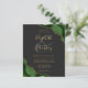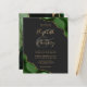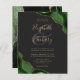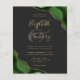 A hunter green watercolor agate design trimmed with faux gold glitter appears in two corners of this elegant design. Personalize it with the couple's names in gold-colored handwriting script over a large gray ampersand. Add the wedding details in gold-colored copperplate and italic fonts on a slate black background. The reverse side features a matching green and gold agate design.
