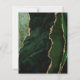 The left-hand edge of this elegant modern wedding save the date card features a hunter green watercolor agate border trimmed with faux gold glitter. The customisable text combines charcoal grey handwriting, copperplate and italic fonts on a white background. The reverse side features a matching hunter green and gold agate design.