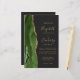 The left-hand edge of this elegant modern wedding invitation features a hunter green watercolor agate border trimmed with faux gold glitter. The customizable text combines gold-colored handwriting, copperplate and italic fonts on an off-black background. Add additional details on the back, along with a QR code to help your guests visit your wedding website.