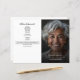 Custom photo funeral programs with obituary and order of service offer a dignified and personalised way to honour a loved one’s life. Featuring a full-page memorial photo with elegant script and serif fonts, this template includes space for acknowledgements, pallbearers, flower bearers, and a heartfelt tribute message. The coordinating inside layout provides a structured order of service alongside space for a written obituary or life summary, making it ideal for memorials, homegoing ceremonies, or celebrations of life. This customisable funeral program design blends simplicity and elegance to create a meaningful keepsake for family and guests.