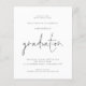 A value for money BUDGET alternative on a smaller size 4.5 x 5.6” semi-gloss 110lbs weight, which is of similar thickness to a postcard (however is not suitable to use as a postcard.). PLEASE NOTE there is ONE invite per sheet . A simple typography informal design in black and white with graduation in an elegant set script, and your grad photo on the back. Easily personalise the rest of the text and replace the sample photo on the back with your own.