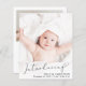 A budget-friendly option to announce your baby's birth, featuring his or her photo with "Introducing" written on top in a stylish script with a heart swash. Underneath add his or her name, birth date and birth stats. On the back, add another photo and personalised message.