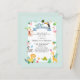 Cute jungle safari animals themed birthday invitation featuring tropical animals, an exotic bird, and other cute party elements. Send out the invites and celebrate the first birthday of the wild one with friends and family.