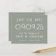 A budget priced smaller 4.5 x 5.6” alternative on 110lbs similar in thickness to a postcard. There is ONE per sheet. Budget Large Typography Sage Green Wedding. Modern elegance with this fully customisable stylish typography design on sage green. Easily personalise the text and, if you have a wedding website, automatically generate a QR code for it on the back by replacing the sample URL to that of the URL of your wedding website. You can delete the sample QR code if not requied via the edit further option, where you can also edit text colours and styles and background colours on each side if you so wish.