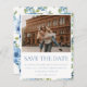 Budget Boho Chic Light Blue Watercolor Floral Wedding Save the Date with Photo