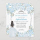Dusty Light Baby Blue Silver Grey Glitter Sparkle Floral Princess Tiara Quinceañera Invitation