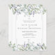A stylish budget wedding invitation featuring pretty sage and lilac leaves that tumble over an elegant silver frame enclosing your wedding details set in classic elegant text. The reverse has your wedding website and RSVP details, and QR code. Designed by Thisisnotme©