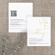 A value for money BUDGET alternative on a smaller size 4.5 x 5.6” semi-gloss 110lbs weight, which is of similar thickness to a postcard (however is not suitable to use as a postcard.). PLEASE NOTE there is ONE per sheet. BUDGET Line Art Faces Gold Glitter QR Wedding. Romantic and minimalist with an elegant informal set style for the header in gold to coordindate with the faux gold glitter of the graphic. The the details are stylishly small beneath with lots of white space for a contemporary feel. Easily personalise with your details. Add your QR code to your wedding website on the back makes this a convenient option for your guests to RSVP and see all the details without the need for separate RSVP and details cards. You can create QR codes for free online. Simply search “QR code creator” and lots of options come up to create for free.