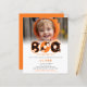 Budget Our Little Boo is Turning Two Photo Halloween Birthday Party. There is ONE per sheet. A budget price smaller 4.5 x 5.6” alternative on 110lbs semi gloss, similar in thickness to a postcard. A fun design for your little one's second birthday. Boo is in a fun set typography with decorated with spooky Halloween elements. Easily personalise the rest of the text and replace the sample image with your own.