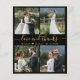 Elegant, minimalist black and gold hand written 4 photo collage personalised wedding thank you personalised affordable low budget THIN card. ***PLEASE NOTE, SCROLL DOWN FOR MORE INFO!*** Stylish wedding thank you card template featuring four (4) photo on the front and one (1) photo on the back side. With the text "Love and thanks" in a swirly hand lettered typography swash tail font script in gold colour on black background. Little heart shape between the names. Personalise your name and thank you message. *** PLEASE NOTE! *** BUDGET PAPER/FLYER IS PAPER THIN. *** UPGRADE THE PAPER FOR A THICKER PAPER. *** Traditional Cardstock with Envelopes: https://www.zazzle.com/love_and_thanks_script_black_gold_collage_wedding_thank_you_card-256213455198629144 https://www.zazzle.com/love_and_thanks_script_black_gold_collage_wedding_thank_you_card-256909492626377076