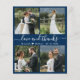 Elegant, minimalist navy and white hand written 4 photo collage personalised wedding thank you personalised affordable low budget THIN card. ***PLEASE NOTE, SCROLL DOWN FOR MORE INFO!*** Stylish wedding thank you card template featuring four (4) photo on the front and one (1) photo on the back side. With the text "Love and thanks" in a swirly hand lettered typography swash tail font script in white colour on dark navy blue background. Little heart shape between the names. Personalise your name and thank you message. *** PLEASE NOTE! *** BUDGET PAPER/FLYER IS PAPER THIN. *** UPGRADE THE PAPER FOR A THICKER PAPER. *** Traditional Cardstock with Envelopes: https://www.zazzle.com/love_and_thanks_script_navy_white_collage_wedding_thank_you_card-256234751920355027 https://www.zazzle.com/love_and_thanks_script_navy_white_collage_wedding_thank_you_card-256606725809859191