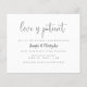 Oops! Unforeseen circumstances happen, and when they do, you can easily let your guests know in a fun and easy way that you are needing to postpone your wedding date with this minimalist black and white wedding postponement card. Featuring "love is patient" in a chic calligraphy font along with classy serif typography. As part of the budget selection here on Zazzle, these invitations do not come with envelopes nor do they fit snugly in a standard-sized envelope. The closest size is A6 but there will be a gap of approximately half an inch. If you don't mind the lack of snugness you could use such widely available A6 envelopes. Otherwise, this design can be transferred to a standard 5x7 format (which comes with envelopes) using the design transfer tool. As a rough guide, as of the time of writing, 100 budget invitations (including a volume discount) would cost around $39 whereas 100 standard 5x7 invites including envelopes would cost approximately $135. Your mileage may vary depending on Zazzle's available promo codes, site-wide sales, or changes in pricing.
