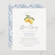 Celebrate the bride-to-be with this elegant and modern lemon-themed bridal shower invitation. The budget design features a hand-painted watercolor illustration of two lemons and lemon blossoms hanging from a tree branch, with "She found her main squeeze" written below. With classic, elegant typography and a modern twist of handwritten calligraphy, this chic watercolor bridal shower invitation is the perfect blend of timeless and contemporary, rustic and minimalist. The back of this main squeeze bridal shower invitation, features painted blue Italian tiles for a touch of Mediterranean charm. Modern floral bridal shower invitations, perfect for any spring or summer bridal shower event, whether it's a backyard brunch, a vineyard tour, or a beachside celebration. This design will add a touch of sunshine to any bridal shower theme, including rustic, farmhouse, Italian-inspired, and citrus-themed. Personalise the invitation with your event details, or use Zazzle's easy-to-use Design Tool to change fonts, colours, and placement. As part of the budget selection on Zazzle, this sheet isn't a standard invite size or paper quality. If you want this design on an invitation card you can find it in our store or use the Zazzle Make Machine to transfer it onto the product of your choice. Browse our store for more lemon bridal shower invitations.
