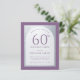 A budget birthday invitation. On a dusty purple rectangular background (a modern colour) it has a faux silver foil arch that has inside purple text on white background. The first line is arched text.