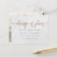 Yikes! Unforeseen circumstances are difficult to plan for, but with these wedding postponement cards, you can easily let your loved ones know! Featuring a white marble background. The words "change of plans" appear at the top in a faux rose gold foil script with sweet swirls. On the reverse, there is a photo template for you to replace with your own. As part of the budget selection here on Zazzle, these invitations come in limited sizes and paper stocks. If you need a different size or paper stock, this design can be transferred to a standard 5x7 format using the design transfer tool for more options.