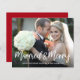 Budget-friendly simple and chic holiday wedding announcement. Your favourite wedding photo fills the front, with "Married & Merry" overlaid in a stylish white script. Personalise with your Christmas greeting and names.