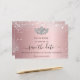 A Save the Date card for a 50th (or any age) birthday masquerade party. A blush pink metallic looking background decorated with faux silver glitter dust and a masquerade mask. Personalise and add a date and name/age. The text: Save the Date is written with a large trendy hand lettered style script with swashes.