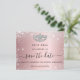 A Save the Date card for a 50th (or any age) birthday masquerade party. A blush pink metallic looking background decorated with faux silver glitter dust and a masquerade mask. Personalise and add a date and name/age. The text: Save the Date is written with a large trendy hand lettered style script with swashes.