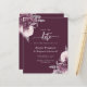 This elegant wedding save the date card features mauve floral bouquets set off with silver faux foil greenery in two corners, on a deep mauve background. The customisable text combines silver grey serif, italic and handwriting fonts. The reverse side features a matching mauve and silver floral design.
