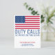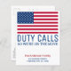 Duty Calls, so we're on the move! Modern American Flag Military Moving Announcements . This American Flag PCS Move announcements are perfect for a all military, army moving announcements. Personalise this american flag moving announcement with your family name, and new address. These budget military moving announcements postcards need to be mailed as oversized postcards so may incur standard postage fees but they don't need an envelope or a return address label.