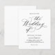 This wedding invitation features an elegant and minimalistic design, with classic black calligraphy and serif fonts on a white background.