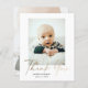 Budget Minimal Script Photo Baby Thank You Card. The back includes a message from the family and a 2nd photo. Click the edit button to customise this design with your photos and details.