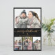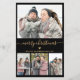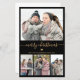 Budget Elegant, Minimalist, Modern Black and Gold 4 Photo Collage Merry Christmas Script Holiday Thin Card. Note: thinner than postcard! This festive, minimal four (4) photo holiday card template features a pretty photo collage, a little doodle heart and says Merry Christmas! The „Merry Christmas” greeting text is written in a beautiful gold hand lettered typography swash-tail font type on black colour background. On the reverse side features greeting text template, little black doodle heart and pine trees on white background. Pretty, cute, cheap thin greeting card is a great choice for your family and friends in this Christmas and Holiday season.