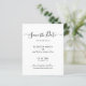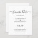 Budget elegant script minimalist modern non photo black and white wedding save the date announcement personalised affordable low budget flyer. Simple clean design template feature an elegant cursive hand lettering typography script „Save the Date” text in black on white background colour. Little love heart motif between the names. ***PLEASE NOTE! *** BUDGET PAPER IS THIN. ENVELOPES INCLUDED.*** UPGRADE THE PAPER FOR A THICKER PAPER. ***