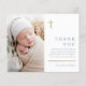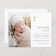 Budget Modern Minimalist Gold Cross Baptism Thank You card with simple typography and photo. Click the edit button to customise this design with your details.