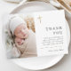 Budget Modern Minimalist Gold Cross Baptism Thank You card with simple typography and photo. Click the edit button to customise this design with your details.