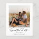 This is a budget minimalist and stylish photo wedding save the date card with a handwritten script, paired with a typewriter font, printed on a paper flyer.