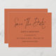 Budget Minimalist Script Terracotta QR Code Save The Date. A budget price SMALLER 4.5” x 5.6” alternative. Available in a SEMI-GLOSS 110 lb CARD STOCK which is the default option (thicker for invitations), OR a SATIN FINISH 80 lb THINNER PAPER STOCK (ideal for enclosures). Add your QR code to your wedding website on the back. Simple elegance with Save The Date in a modern set script.The rest of the text you can easily personalise.Shown here in black on terracotta however the text and background colours can be changed if you wish via the customise further option.