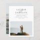 This timeless, minimalist wedding design is sure to go beautifully with any wedding colours, season, and theme. The front of the card is separated into two sections: the top features the wedding event typography, and the bottom, a landscape photo of the happy couple. The wedding event typography showcases the two names in bold serif capitals with an ampersand behind it in a slightly lighter shade to really make the names stand out. Then, the invitation to the guests follows. We have chosen a simple message: "[NAME 1 & NAME 2] invite you to celebrate their wedding" but you can change this to any text you have in mind. Below, there is the date and time in lowercase serif italics, the venue and address in capitals, and the reception info in italic lowercase typography again. You might choose to change the fonts, layout, colours, and punctuation of the text to fit your needs. Please note the ampersand is an uploaded image and cannot be modified using the Zazzle design tool. The invitations reverse to a second, different engagement photo: a photo of your choice covering the entire back of the card. If you only wanted to use one photo, you can delete this and choose one of your wedding colours to cover the back. To get access to these advanced editing options, simply select "Personalise" and then "Edit using design tool". Please remember to change or delete all of our template text and photos. If you need any help with these edits, or would like to work with me on a custom order, message me through the button below. Please note that you need to contact me before purchasing, as I can't change an order and we would have to cancel the purchase and start again. As part of the budget selection on Zazzle, this sheet isn't a standard invite size or paper quality. If you want this design on an invitation card you can find it in our store or use the Zazzle Make Machine to transfer it onto the product of your choice. Please take a look at my "Designer Favourites" collection if you would like to browse more wedding invitations!