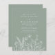 Invite your guests to your special day with a "Modern Boho Sage Green Wildflower Wedding Invitation." This design features soft sage green tones paired with delicate wildflower illustrations, blending modern boho elements with natural elegance. The clean, minimalist typography complements the earthy, organic feel of the wildflowers, creating a sophisticated yet relaxed vibe. Perfect for couples planning a rustic, nature-inspired, or outdoor wedding, this invitation sets the tone for a memorable celebration surrounded by love and natural beauty. The soft green palette and whimsical florals make it a unique and beautiful choice for your wedding day.